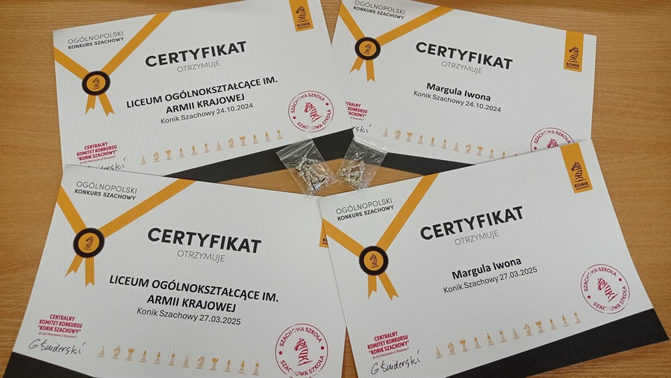 27 marca 2025 roku uczniowie po raz drugi wzięli udział w Ogólnopolskim Konkursie Szachowym „KONIK SZACHOWY”. W ramach konkursu, uczestnicy rywalizowali w dwóch kategoriach: HETMAN (dla uczniów szkół ponadpodstawowych) oraz KRÓL (dla graczy z rankingiem powyżej 1800).