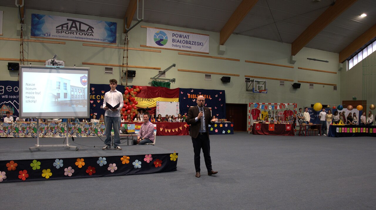Wydarzenie rozpoczęła Pani Wicedyrektor Anna Król, która przywitała gości i opowiedziała o szkole, jej tradycjach oraz ofercie edukacyjnej. Następnie głos oddano Wicestaroście Powiatu Białobrzeskiego Panu Bartłomiejowi Kowalczykowi, absolwentowi naszej szkoły, który podzielił się swoimi wspomnieniami z czasów nauki w szkole oraz opowiedział, jak edukacja tutaj przygotowała go do wyzwań zawodowego życia.