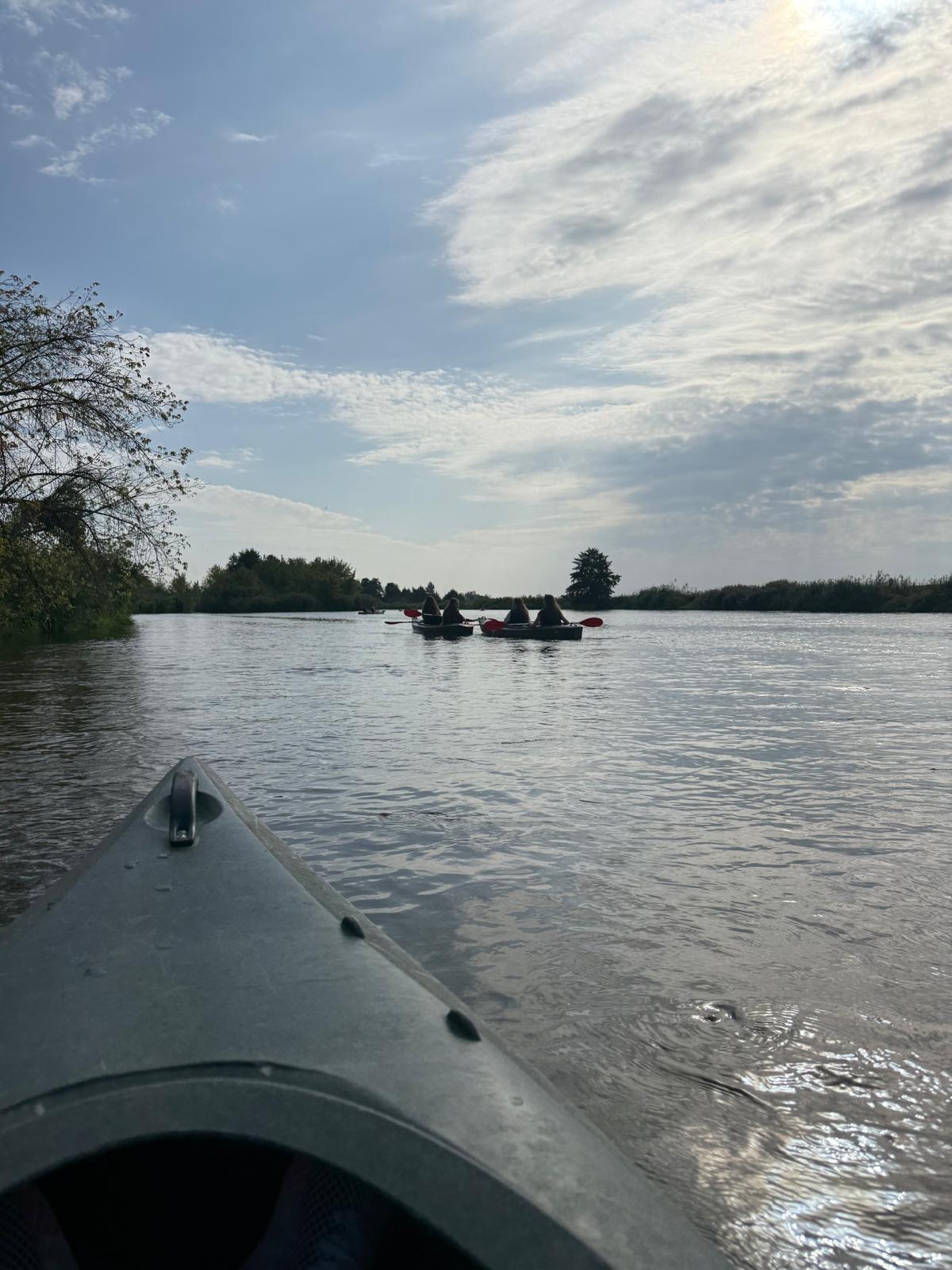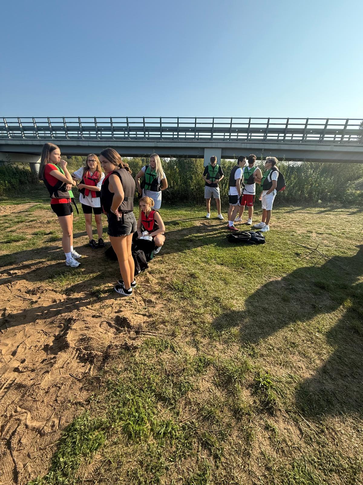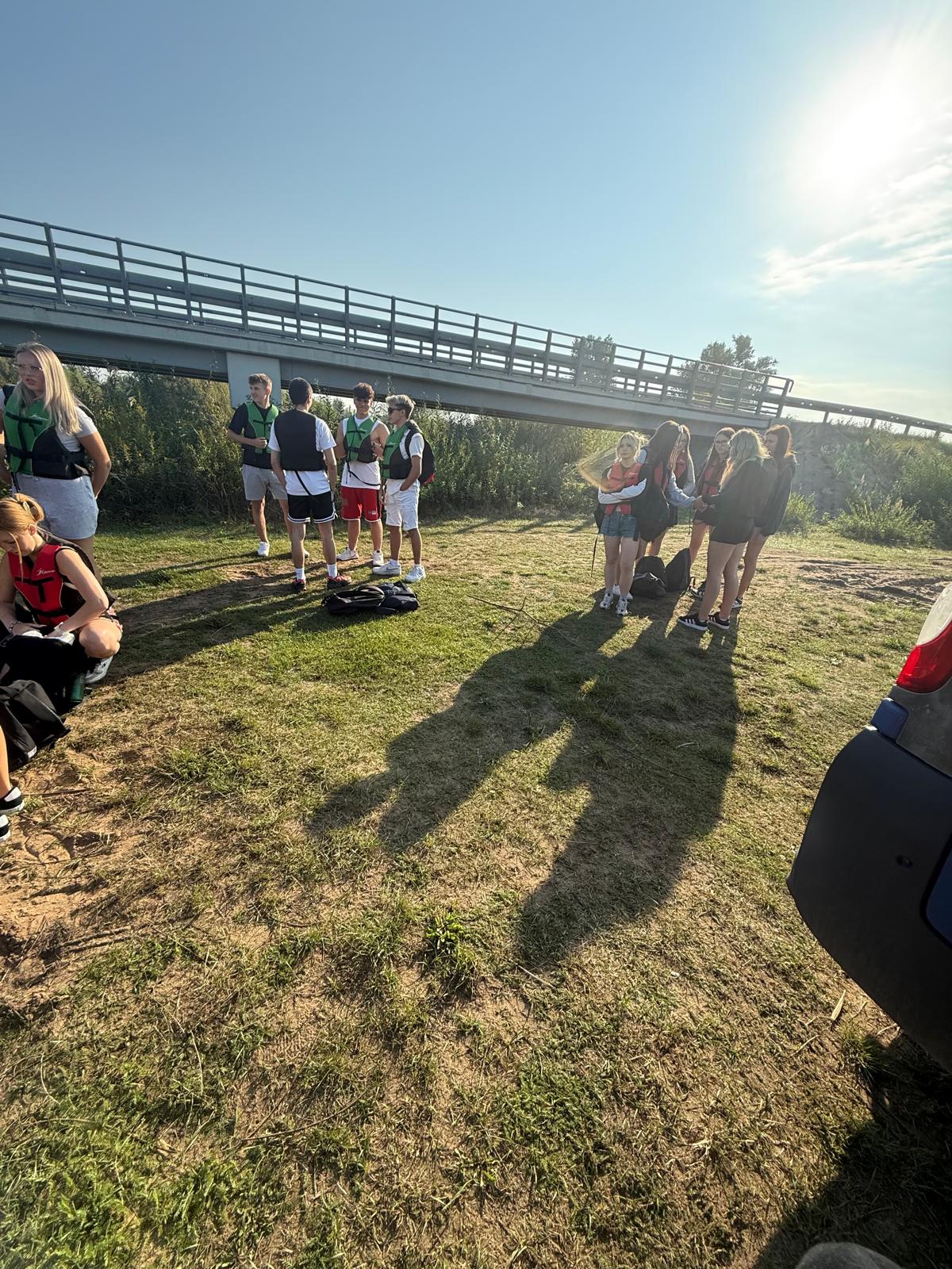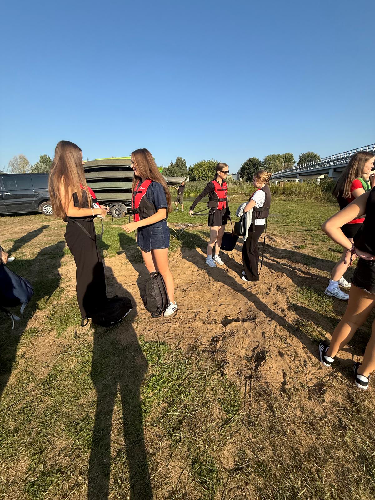 Trasa spływu obfitowała w malownicze widoki – zielone brzegi, szumiące drzewa i słońce przebijające się przez liście. Woda była spokojna, jednak wymagała od uczniów współpracy, nie obyło się również bez kilku małych „przygód”, które tylko dodały uroku całej wyprawie.