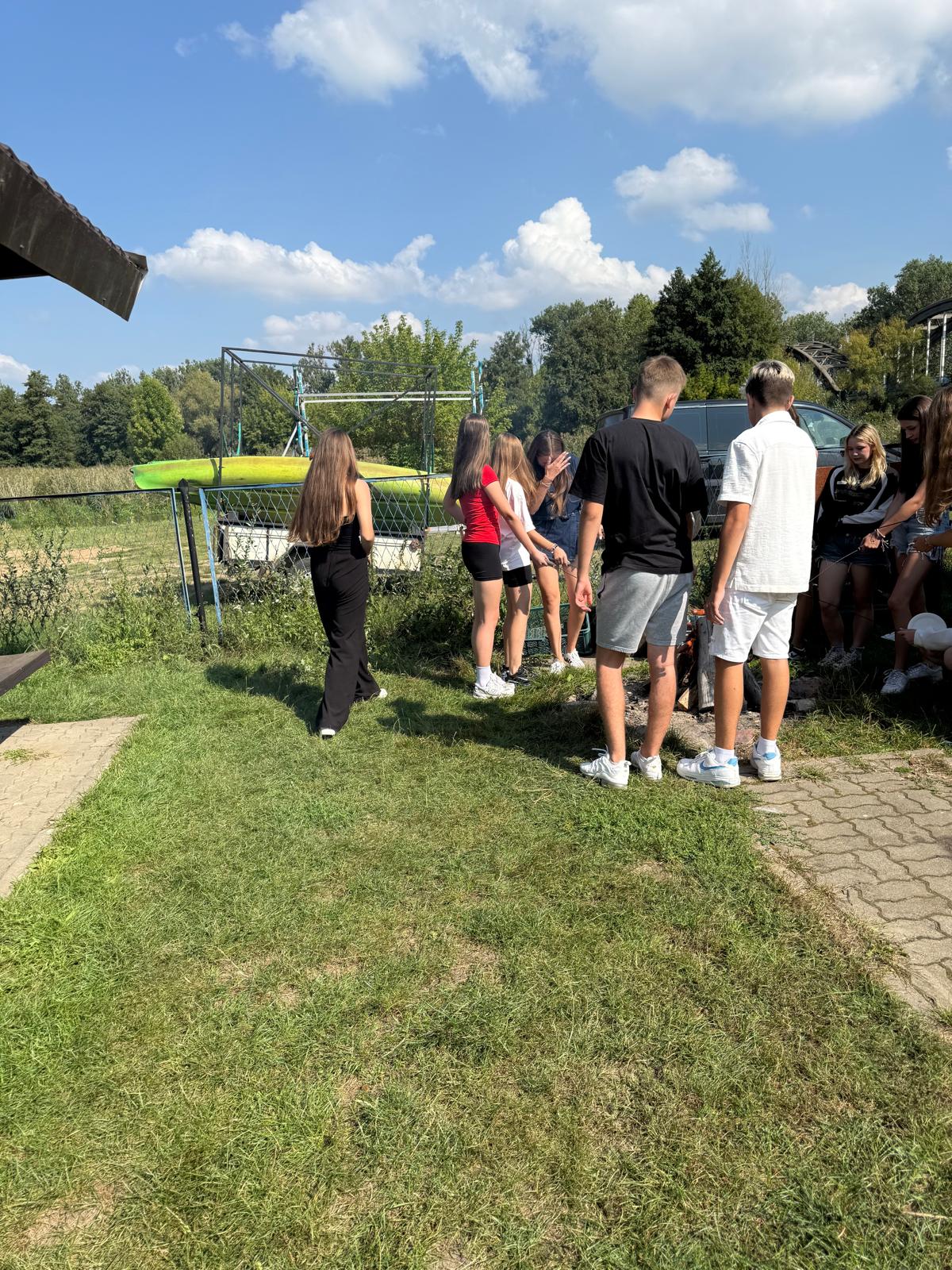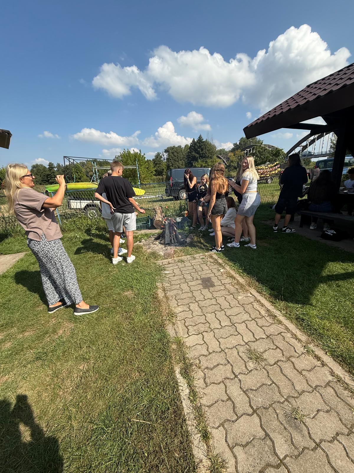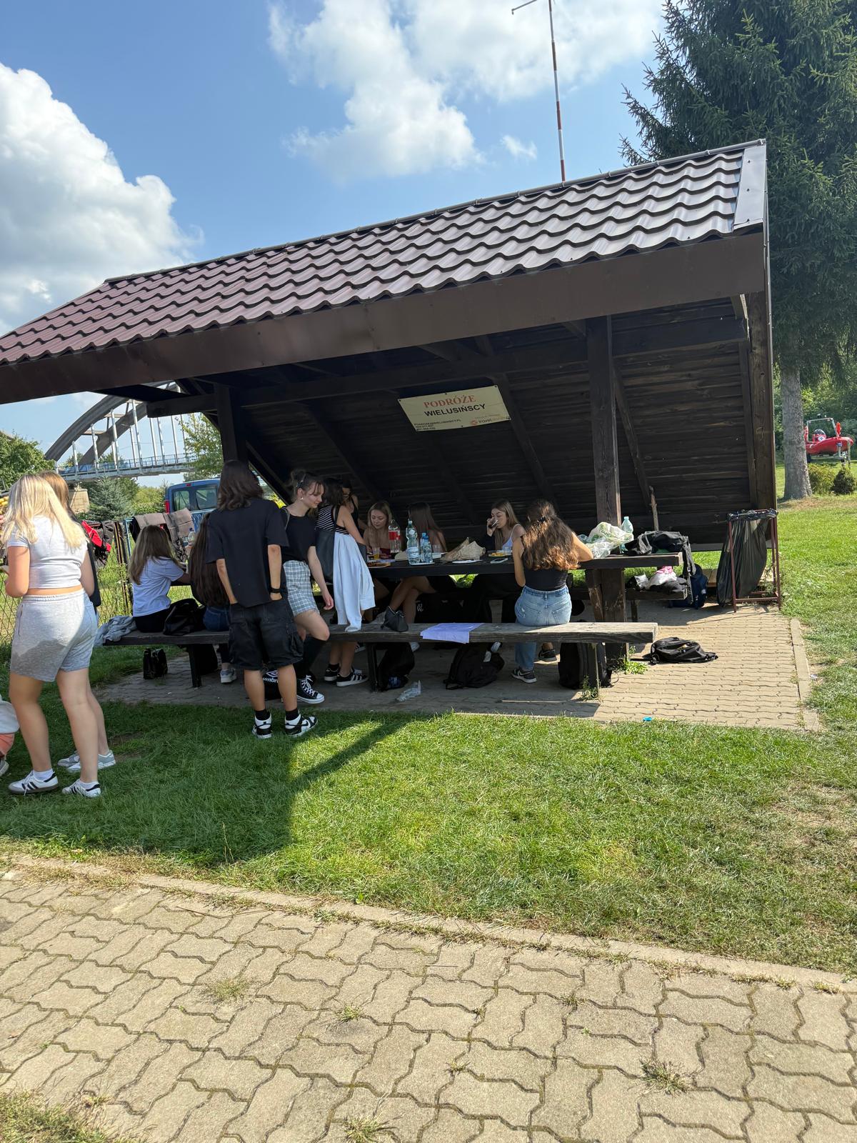 Następnie zatrzymaliśmy się na odpoczynek nad brzegiem Pilicy, gdzie spędziliśmy miło czas przy ognisku i pieczeniu kiełbasek. To była doskonała chwila, by odetchnąć od szkolnej rutyny i zacieśnić koleżeńskie więzi.