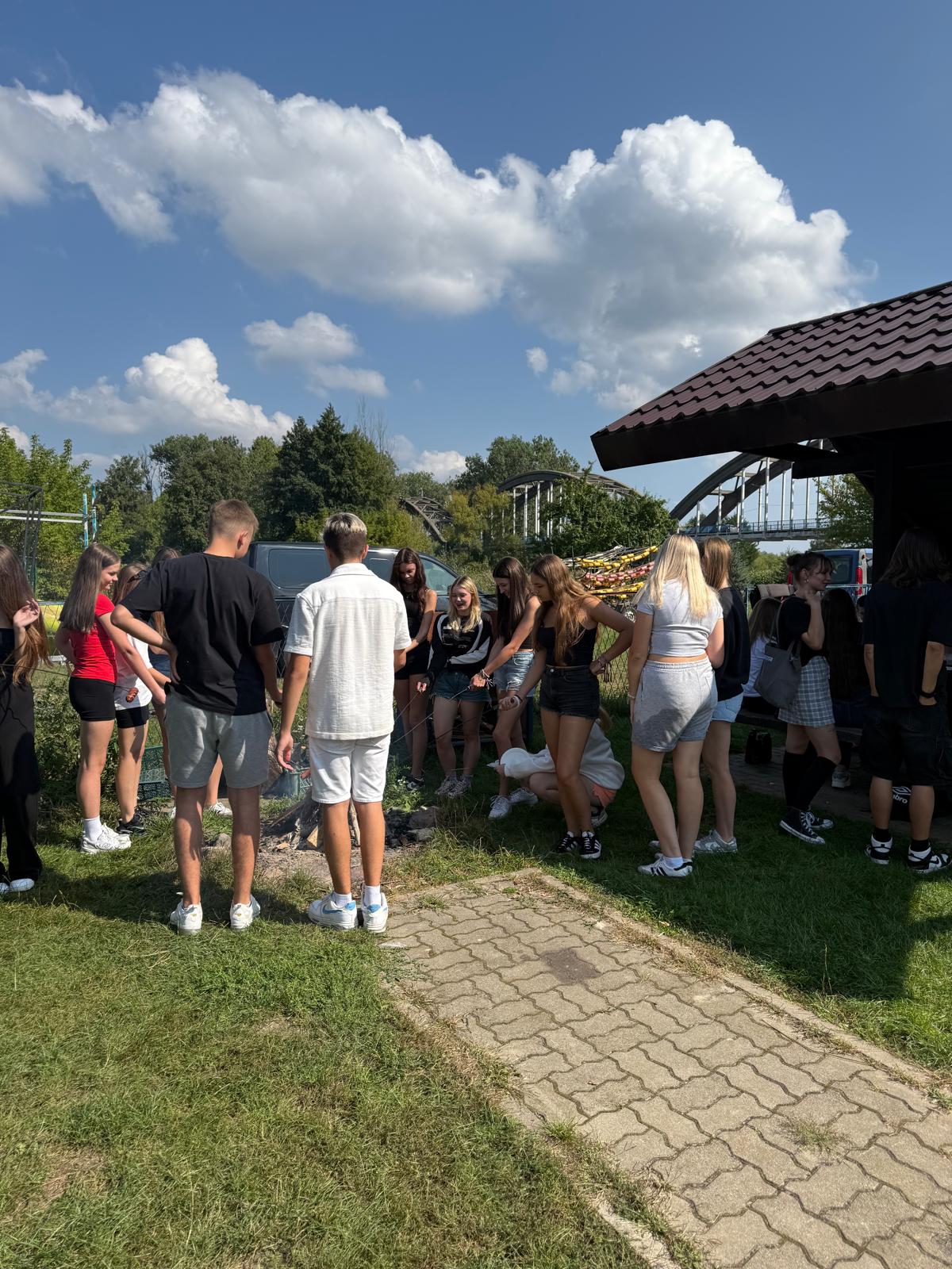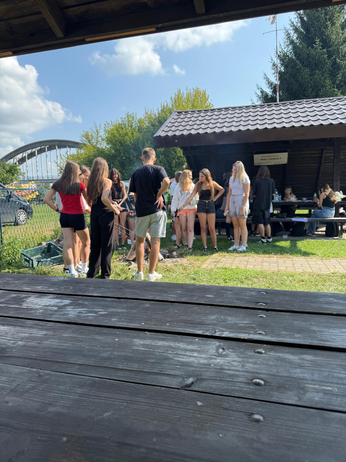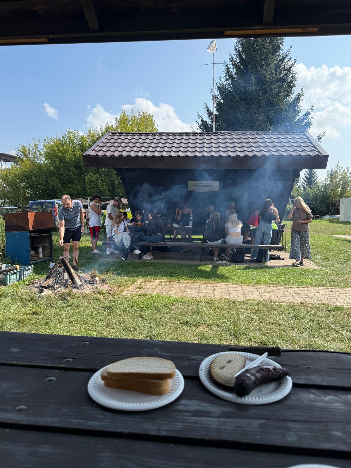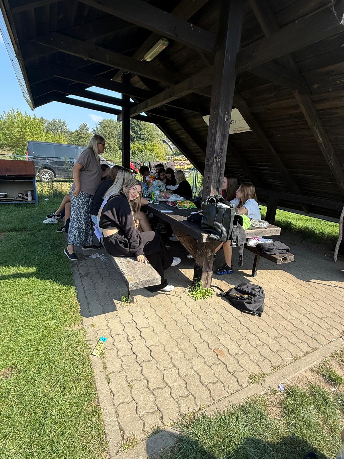 Następnie zatrzymaliśmy się na odpoczynek nad brzegiem Pilicy, gdzie spędziliśmy miło czas przy ognisku i pieczeniu kiełbasek. To była doskonała chwila, by odetchnąć od szkolnej rutyny i zacieśnić koleżeńskie więzi.