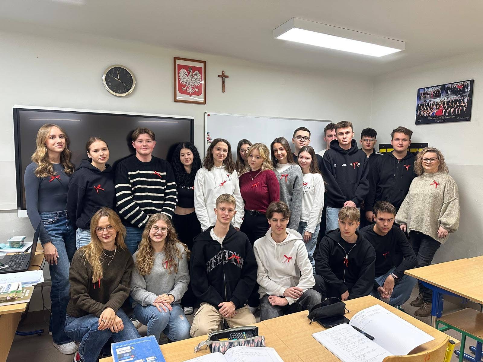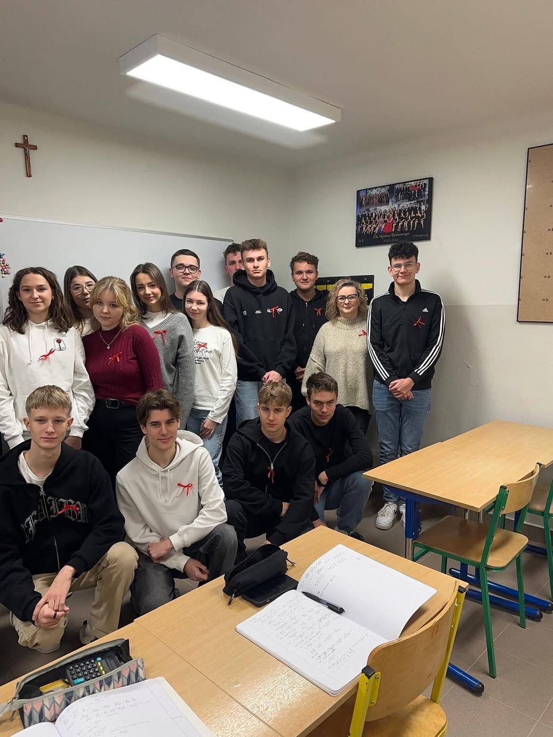 W ramach solidarności z osobami dotkniętymi tymi chorobami, uczniowie założyli czerwone wstążki – symbol wsparcia i świadomości. Wstążki te były widocznym wyrazem empatii i troski o osoby zmagające się z HIV i AIDS, a także przypomnieniem o znaczeniu profilaktyki w walce z tymi chorobami.