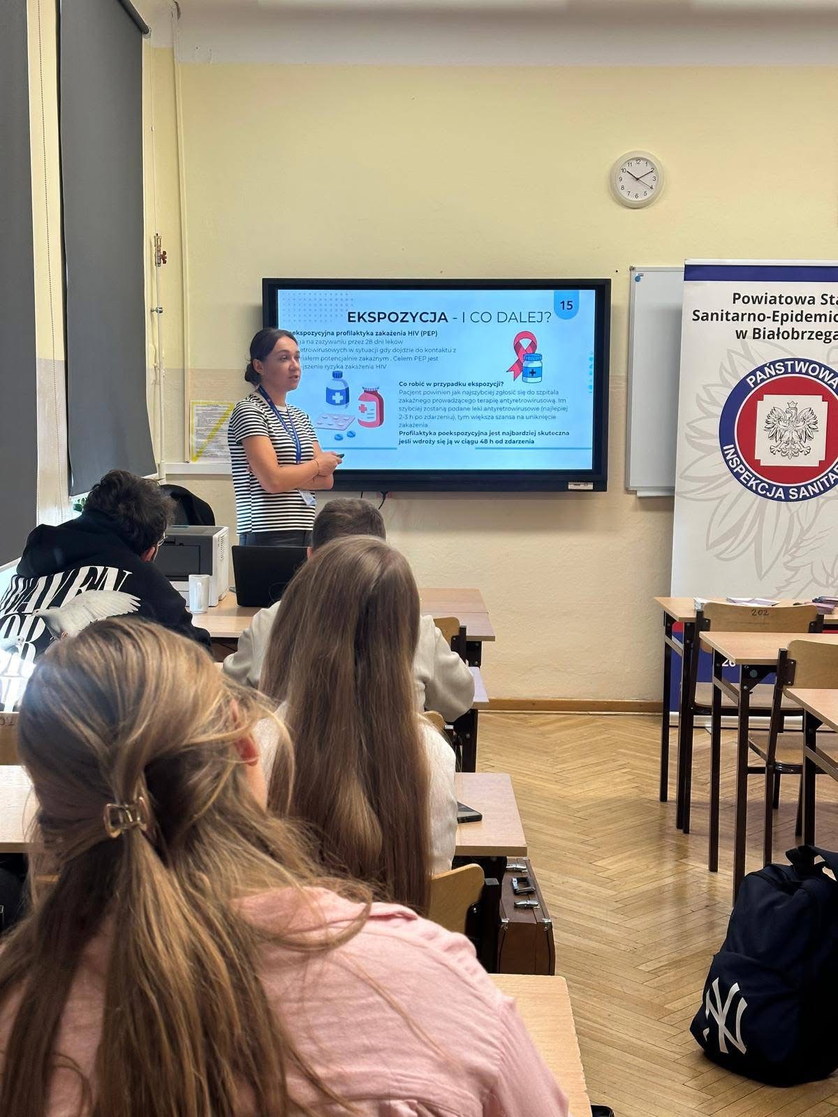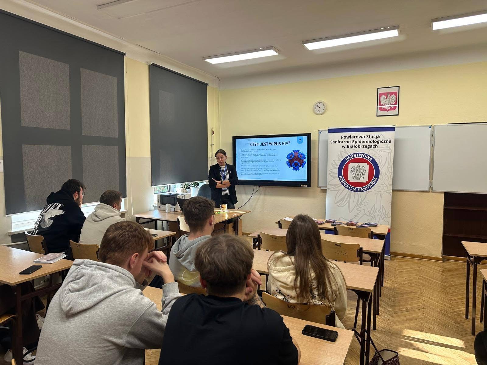 2 grudnia 2024 roku uczniowie klas 3a i 4a wzięli udział w prelekcji zorganizowanej we współpracy z Powiatową Stacją Sanitarno-Epidemiologiczną. Spotkanie miało na celu poszerzenie wiedzy młodzieży na temat HIV i AIDS, profilaktyki oraz wsparcia osób żyjących z tymi chorobami.