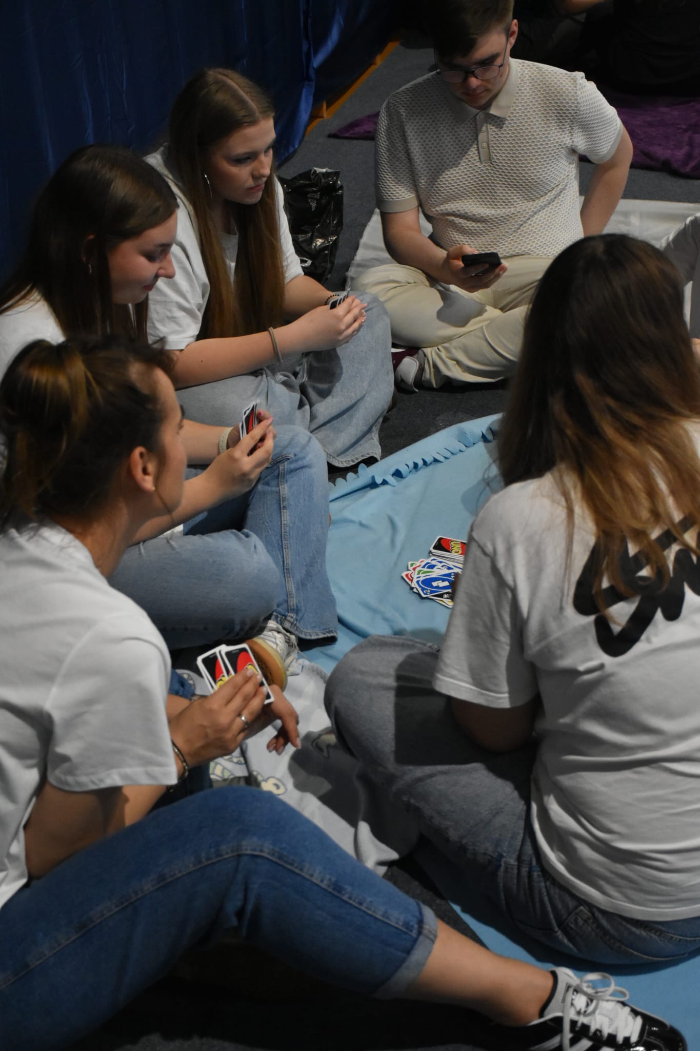 Po emocjach tanecznych przyszedł czas na piknik klasowy. Uczniowie mogli wspólnie odpocząć, porozmawiać i spędzić czas w mniej formalnej atmosferze. Nie zabrakło również gier integracyjnych i różnorodnych aktywności sportowych, które sprzyjały współpracy i dobrej zabawie.