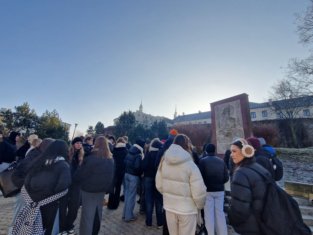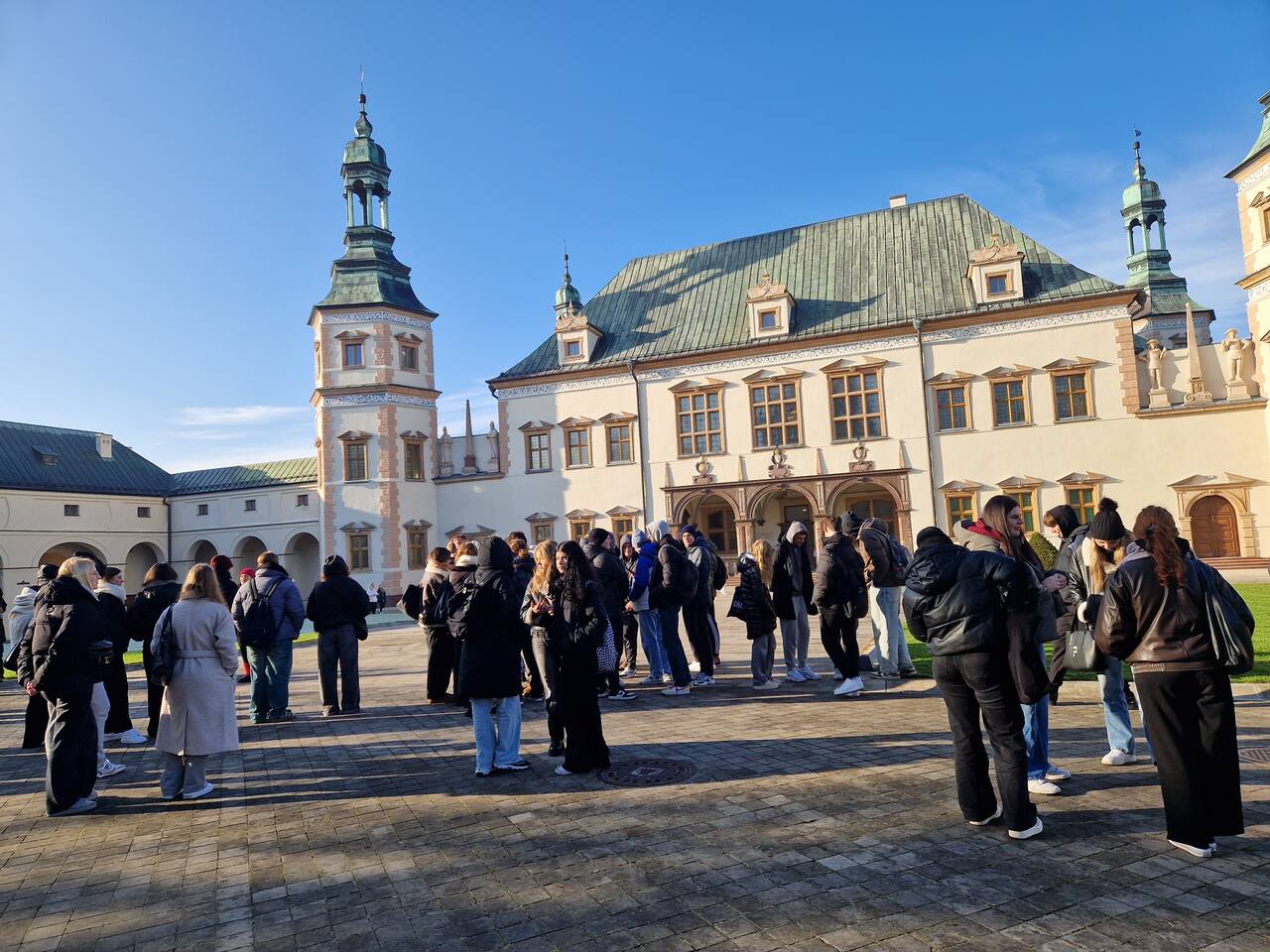 Następnie udaliśmy się do Pałacu Biskupów Krakowskich, gdzie podziwialiśmy architekturę i dowiedzieliśmy się wielu ciekawych rzeczy o historii tego miejsca. Kolejnym punktem była kielecka katedra, której piękno i historia zachwyciły nas wszystkich. Zatrzymaliśmy się także przy Alei Sław, gdzie poznaliśmy postacie związane z miastem i ich dokonania.