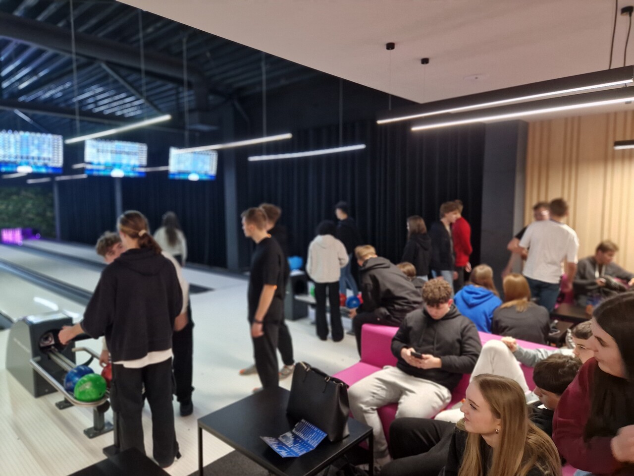 Po zwiedzaniu przyszedł czas na zabawę! Udaliśmy się na tor gokartowy, gdzie każdy mógł spróbować swoich sił w wyścigu. Emocje sięgały zenitu, a rywalizacja była naprawdę zacięta! Żeby ochłonąć po tych emocjonujących chwilach, wybraliśmy się na kręgle – to był świetny sposób na zakończenie pełnego wrażeń dnia.