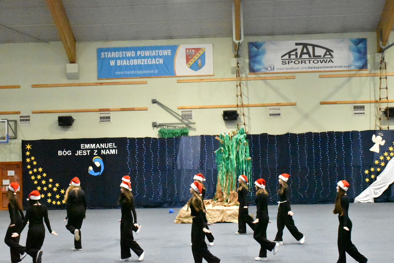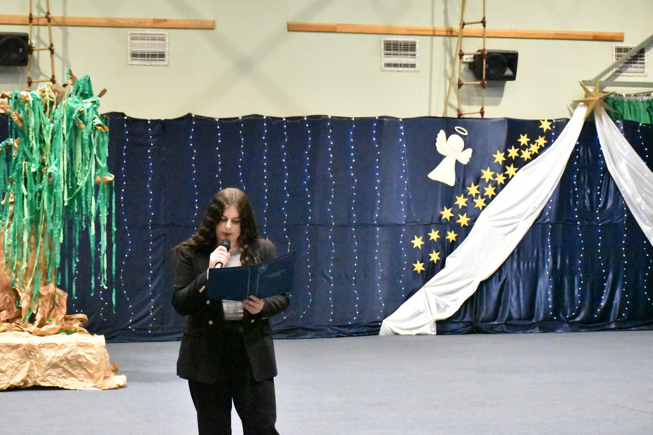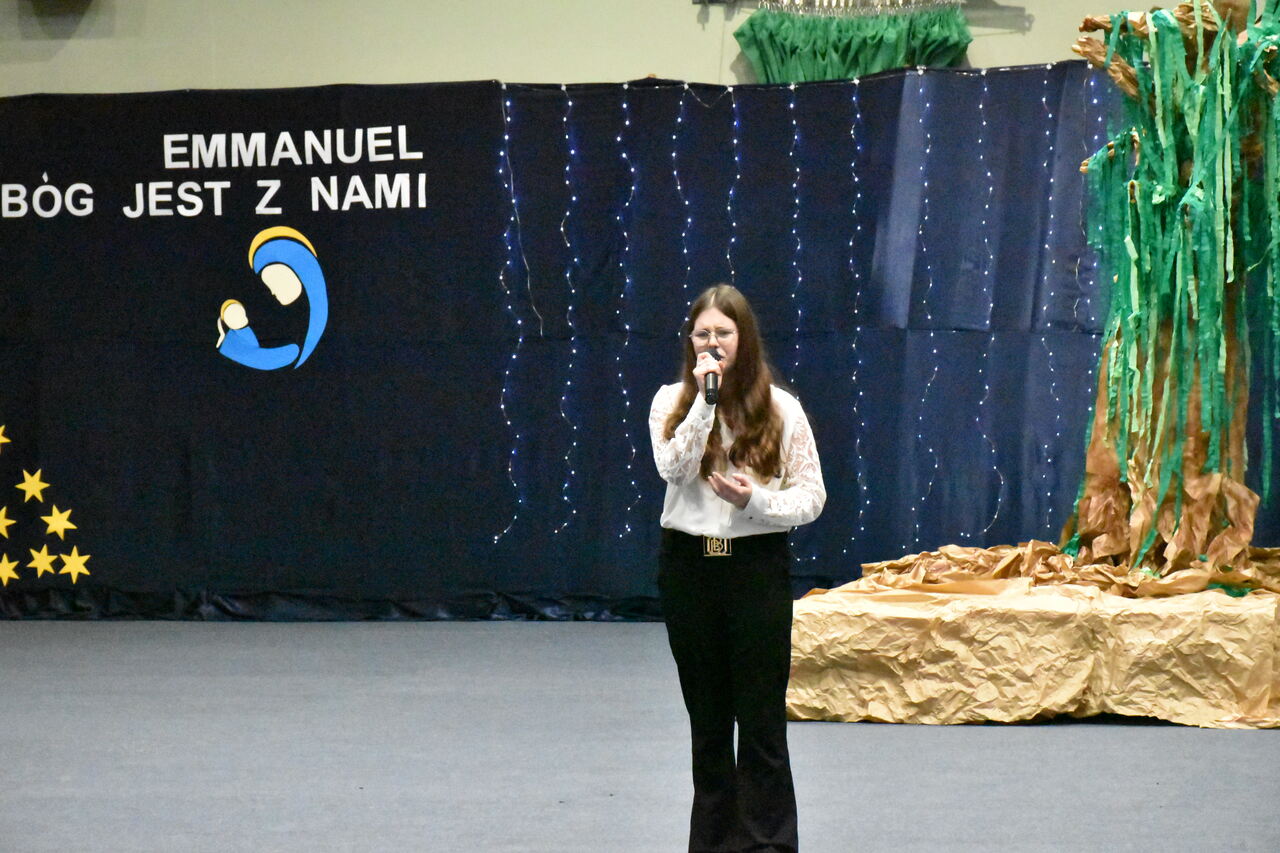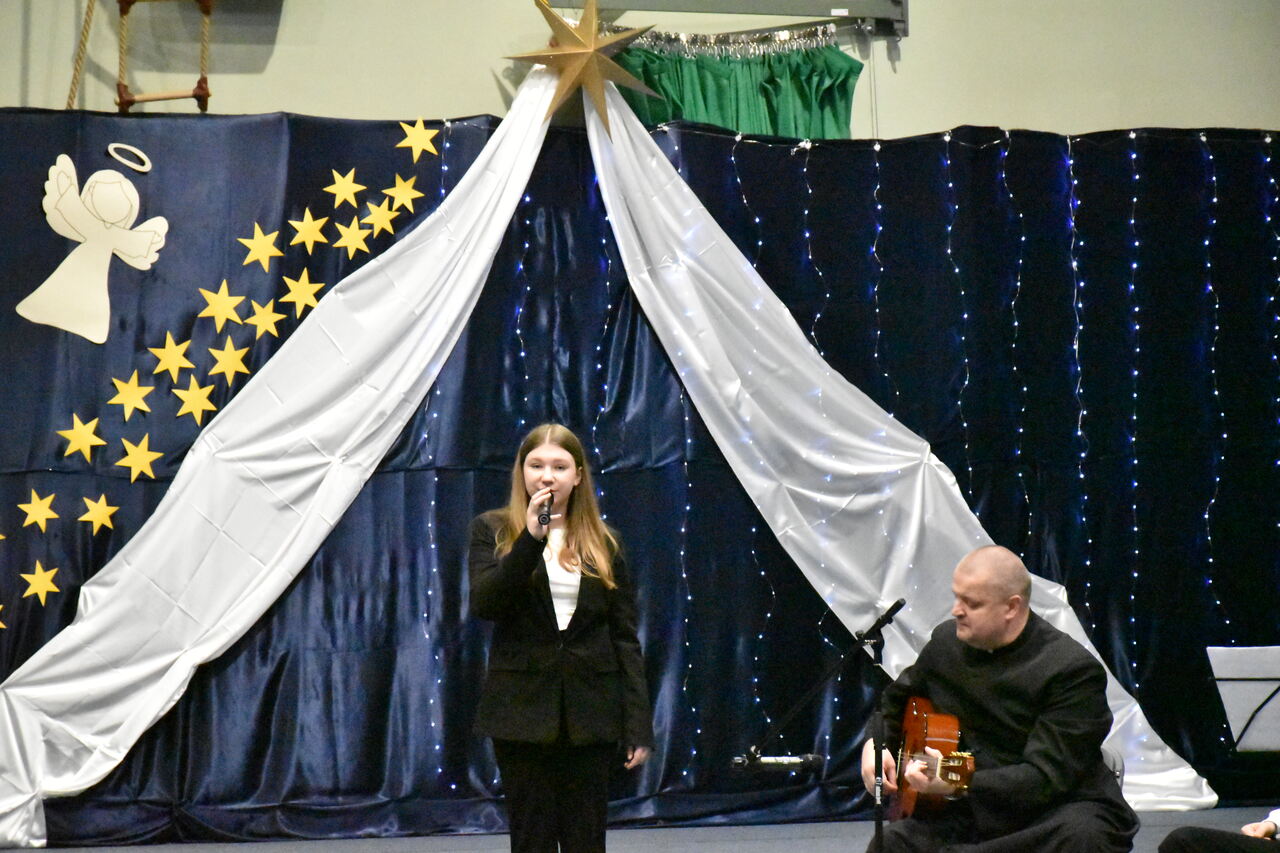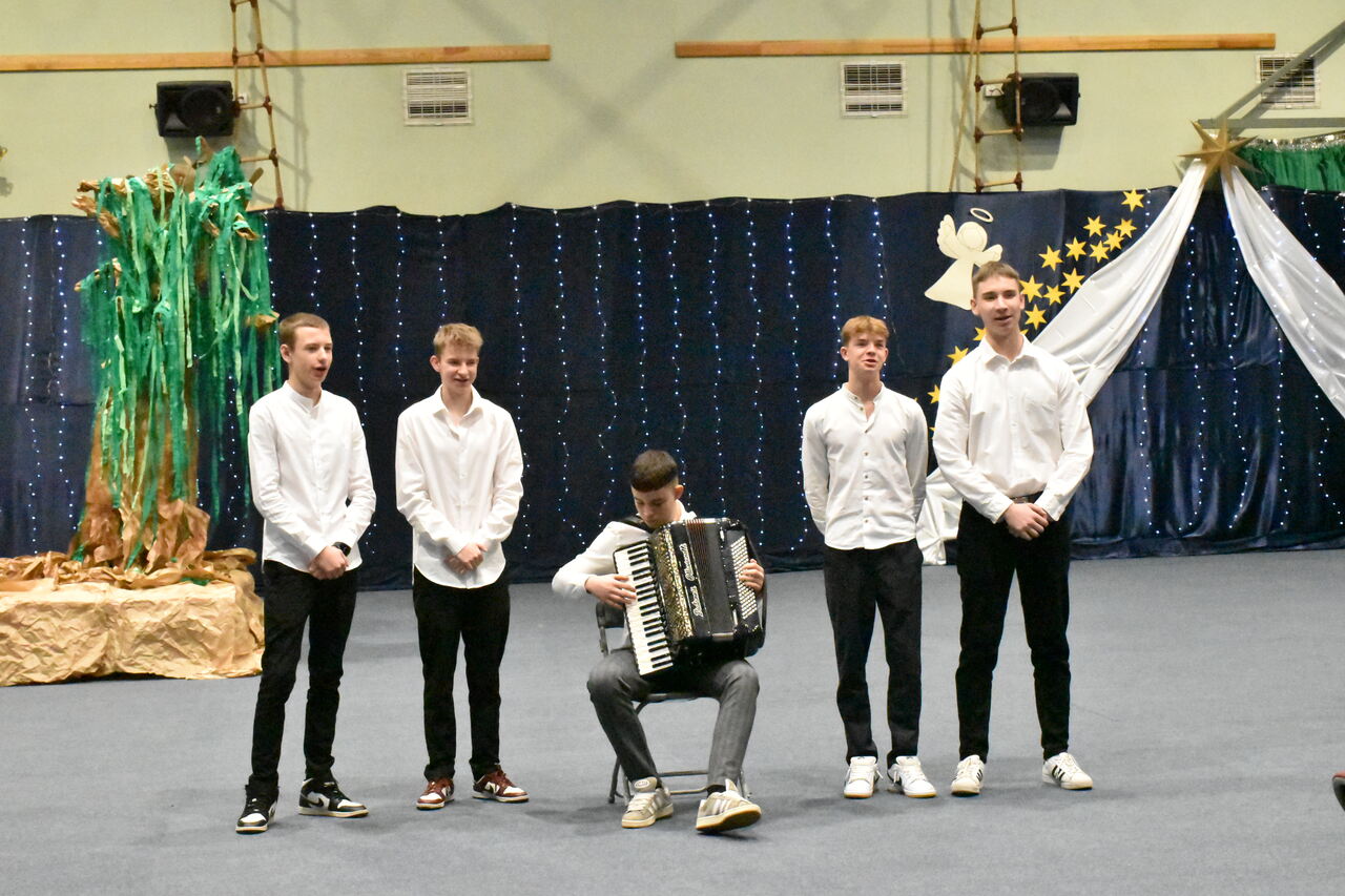 19 grudnia 2024 roku w naszej szkole miała miejsce niezwykła uroczystość – szkolna Wigilia. Hala Sportowa zamieniła się w prawdziwe świąteczne miejsce, pełne ciepła, radości i bożonarodzeniowej atmosfery. Jasełka zostały przygotowane przez naszych uczniów pod czujnym okiem księdza Grzegorza Potrzebowskiego oraz pani Eweliny Matysiak. W tym roku przedstawienie miało oryginalną wersję słowno-muzyczną. Całość przedstawienia wprowadziła nas w refleksyjny, ale i radosny nastrój Świąt Bożego Narodzenia.