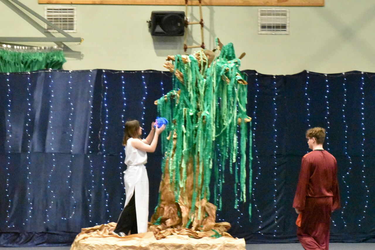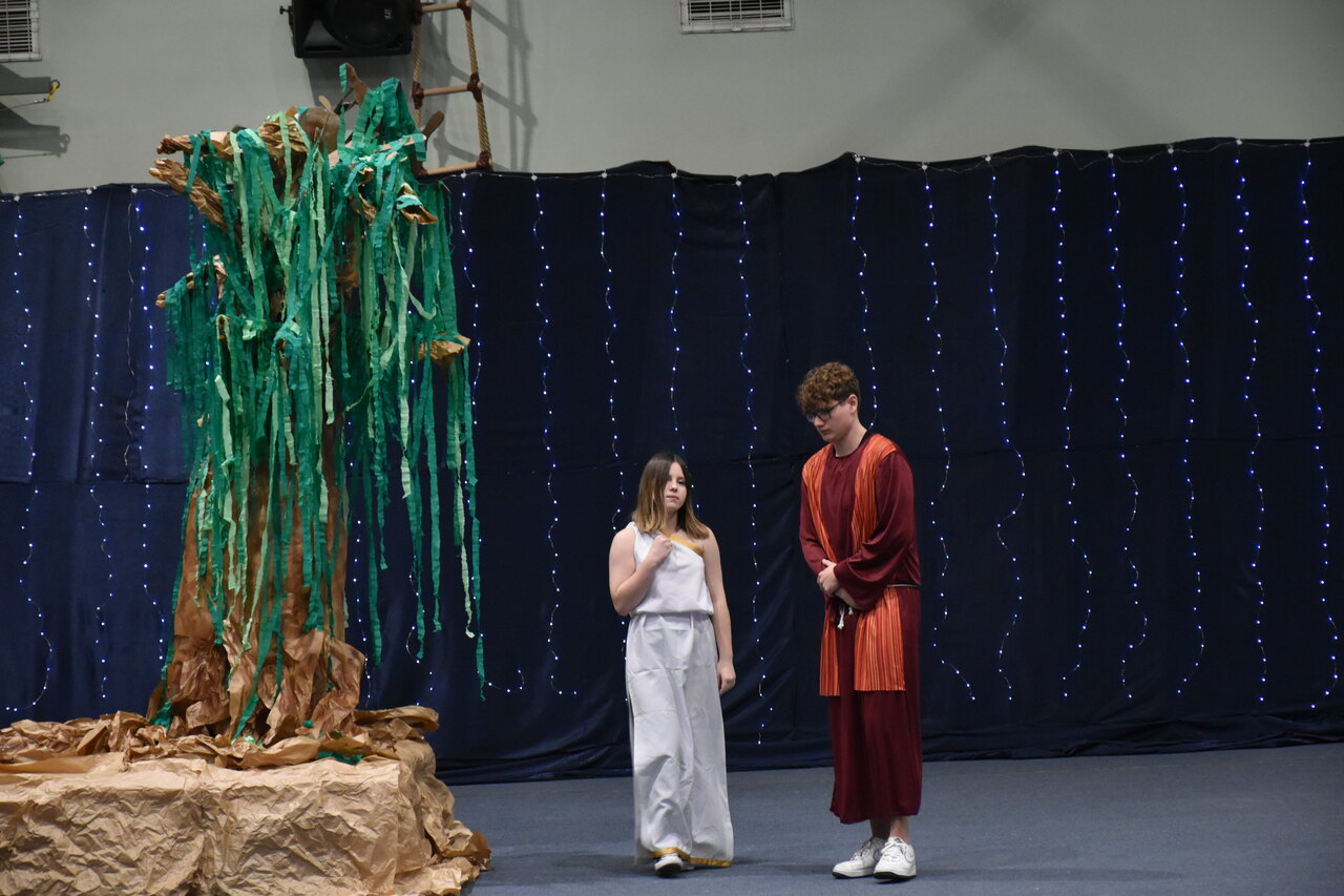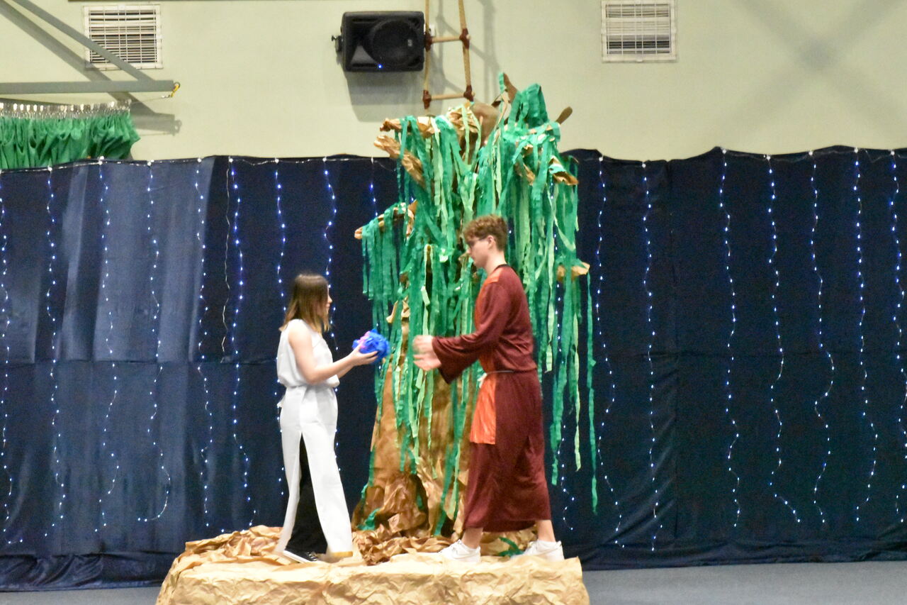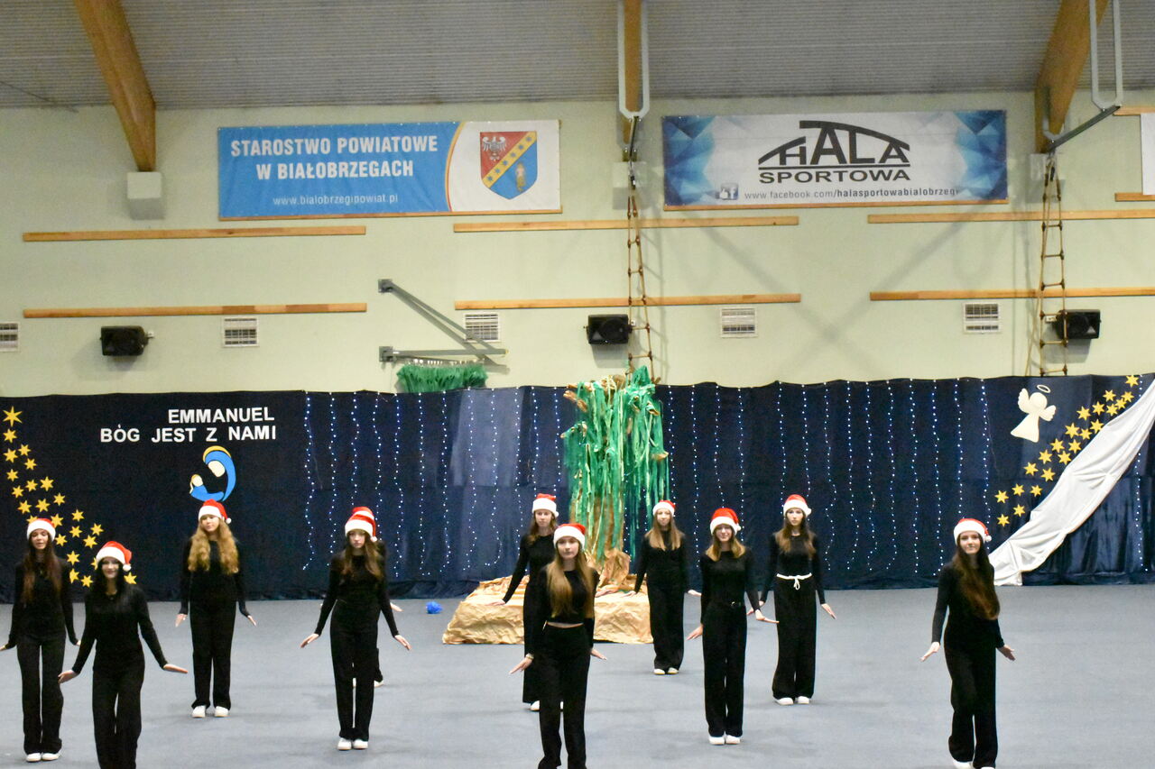 19 grudnia 2024 roku w naszej szkole miała miejsce niezwykła uroczystość – szkolna Wigilia. Hala Sportowa zamieniła się w prawdziwe świąteczne miejsce, pełne ciepła, radości i bożonarodzeniowej atmosfery. Jasełka zostały przygotowane przez naszych uczniów pod czujnym okiem księdza Grzegorza Potrzebowskiego oraz pani Eweliny Matysiak. W tym roku przedstawienie miało oryginalną wersję słowno-muzyczną. Całość przedstawienia wprowadziła nas w refleksyjny, ale i radosny nastrój Świąt Bożego Narodzenia.
