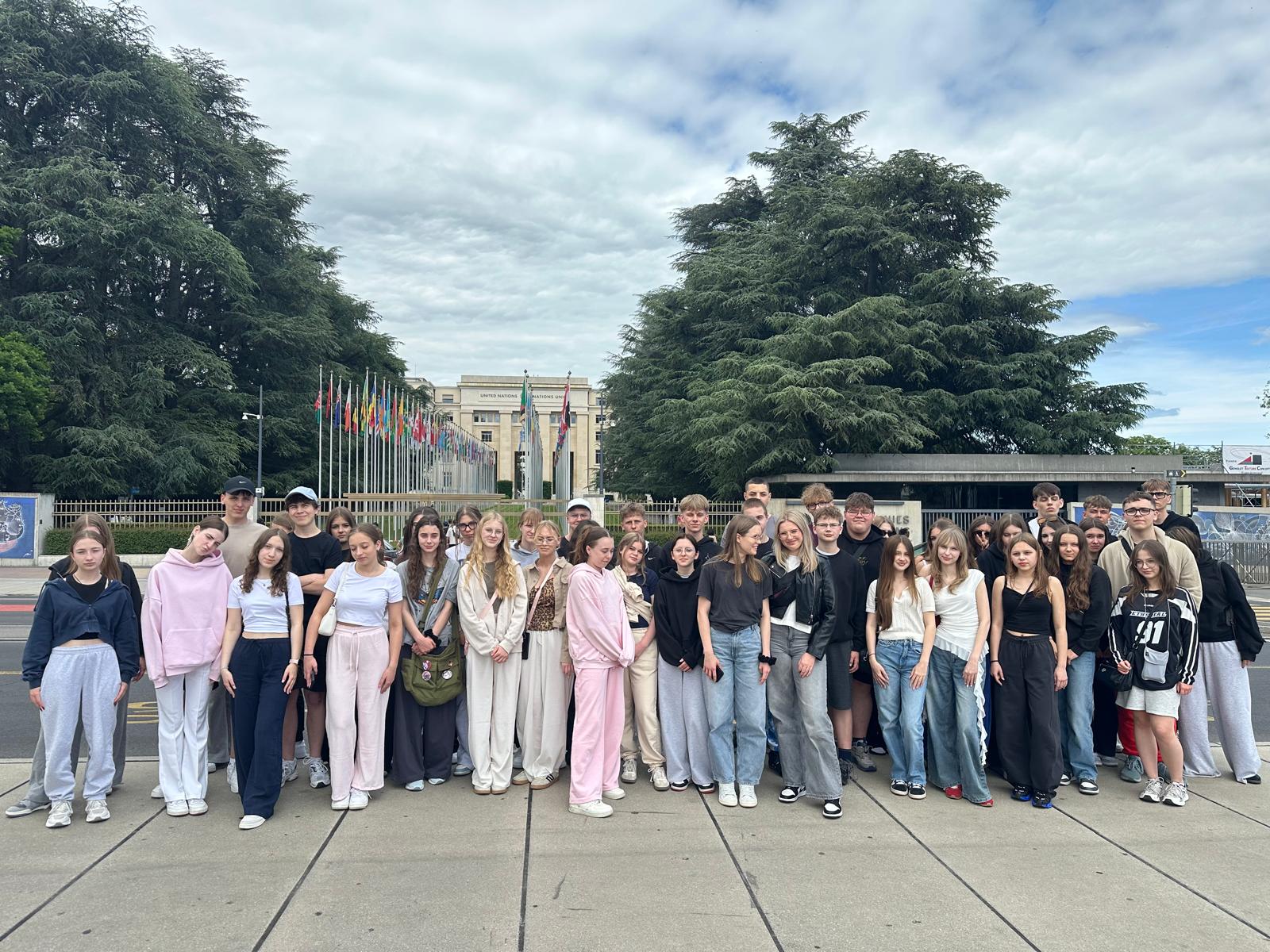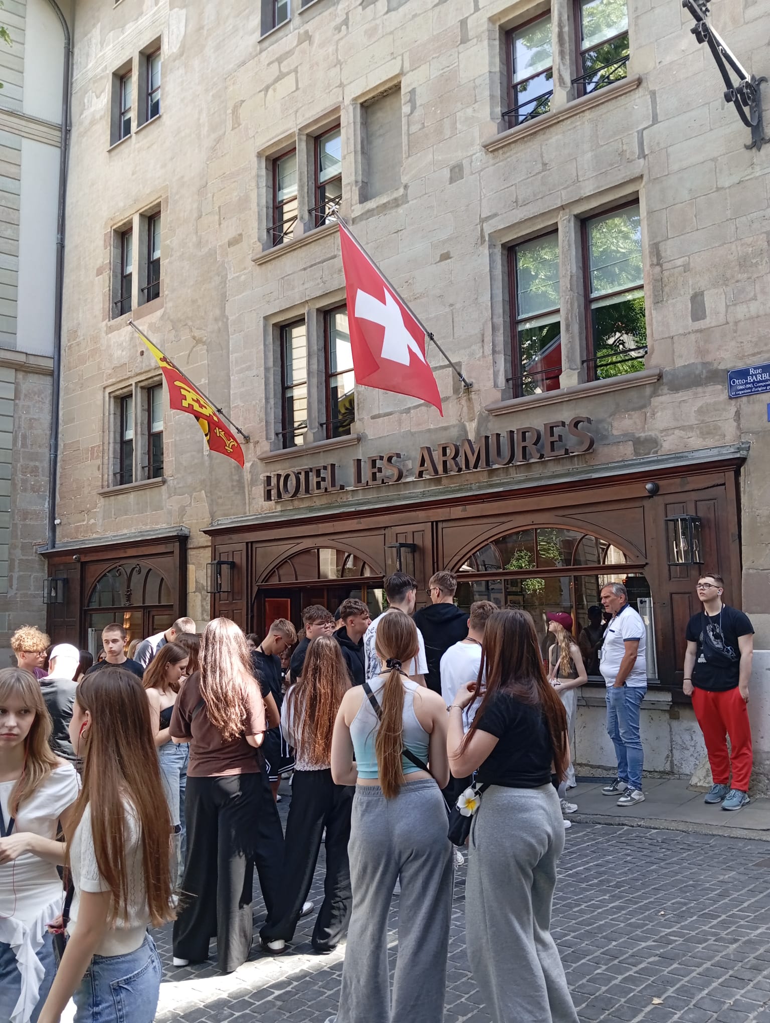 Następnie, podziwiając alpejskie krajobrazy Szwajcarii, dotarliśmy do Genewy. Tam zobaczyliśmy siedziby licznych międzynarodowych instytucji, m.in. ONZ i Międzynarodowego Komitetu Czerwonego Krzyża. Spacerowaliśmy promenadą wzdłuż Jeziora Genewskiego z charakterystyczną fontanną Jet d’Eau. Podczas przechadzki w kierunku starego miasta odwiedziliśmy również katedrę św. Piotra, ratusz i słynny Maison Tavel – najstarszy dom w Genewie.