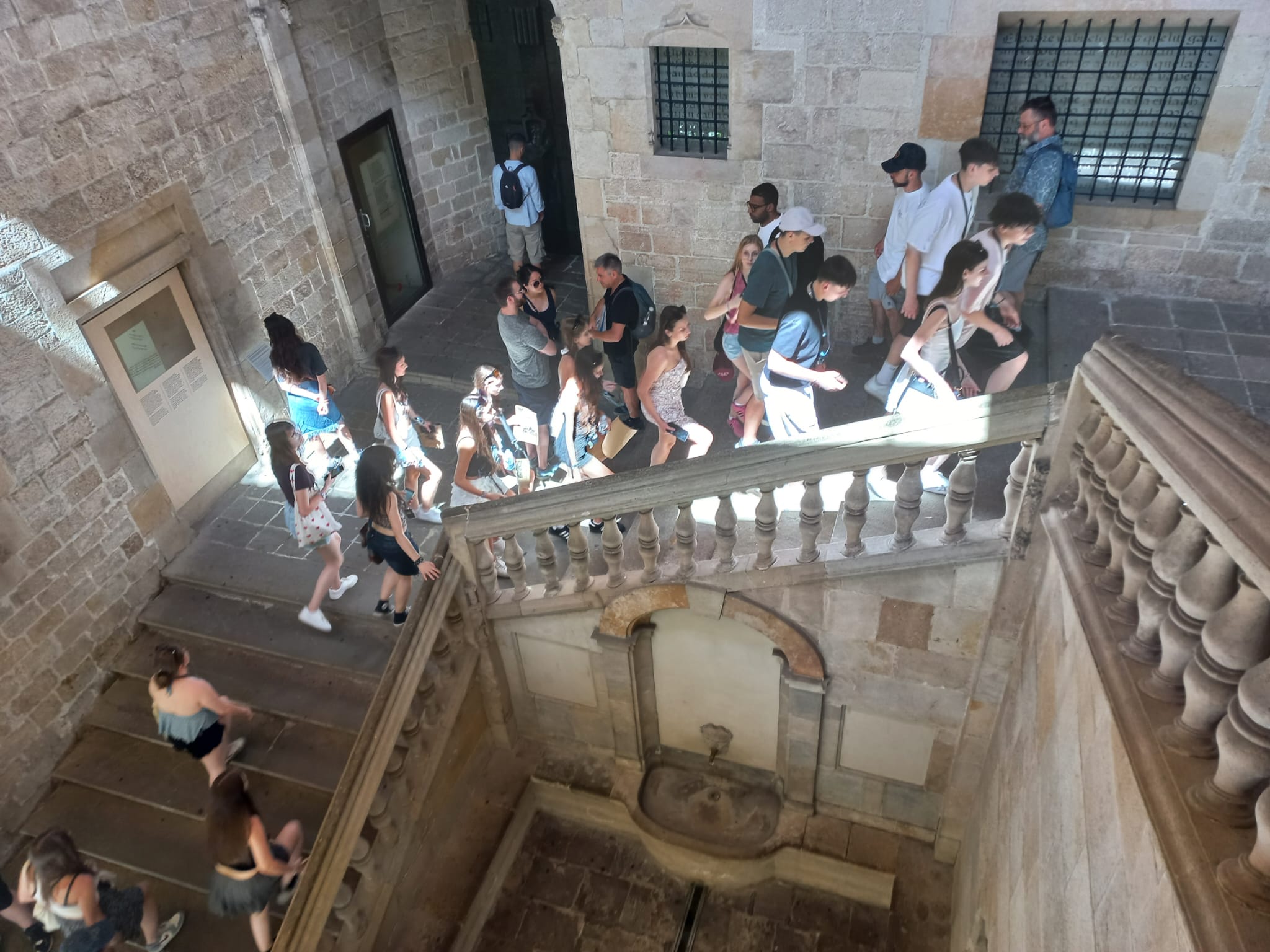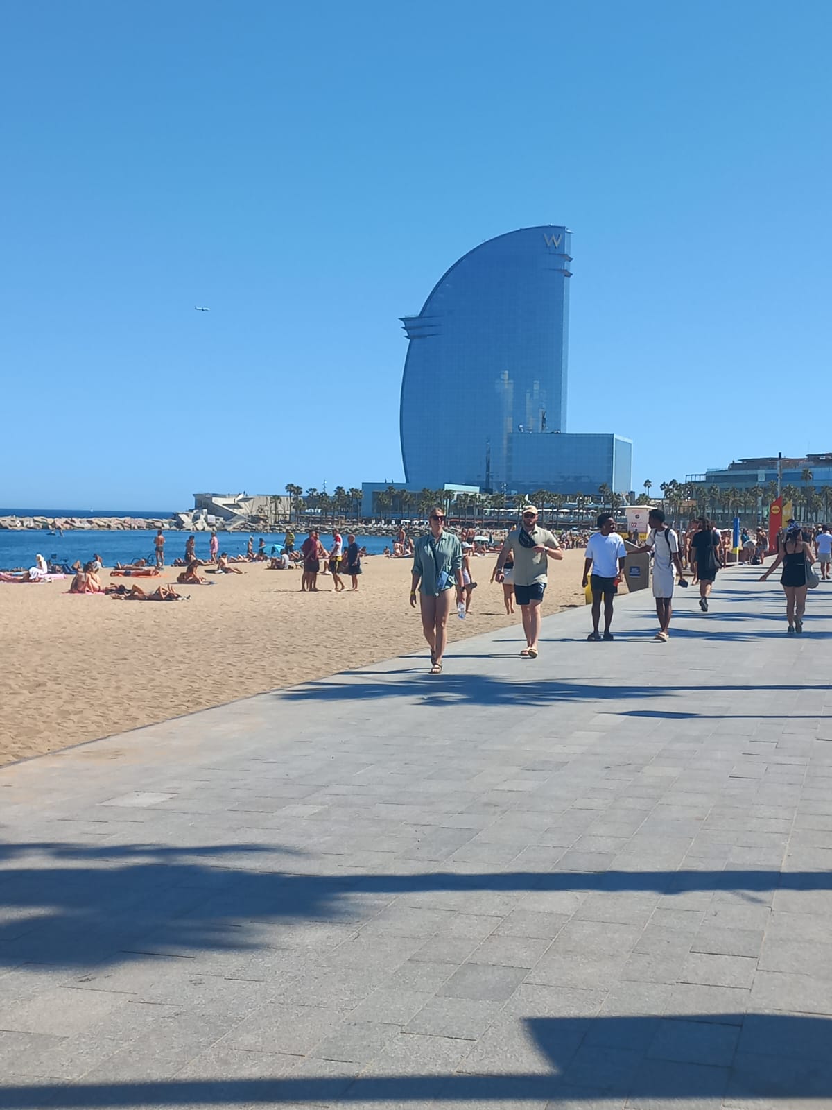 Piątego dnia kontynuowaliśmy odkrywanie Barcelony. Zaczęliśmy od Casa Milà i Casa Batlló – dwóch niezwykłych budynków zaprojektowanych przez Gaudiego, które jednych zachwycają, a innych zaskakują swoją oryginalnością. Spacerując po gotyckiej dzielnicy, podziwialiśmy katedrę św. Eulalii i zatrzymaliśmy się na słynnej La Rambli, gdzie znajduje się pomnik Kolumba. Następnie udaliśmy się na wzgórze Montjuïc, skąd rozpościera się wspaniała panorama miasta. Zwiedziliśmy także obiekty olimpijskie, a wiele emocji dostarczyła nam przejażdżka kolejką linową Teleféric. Dzień zakończyliśmy relaksem na plaży.