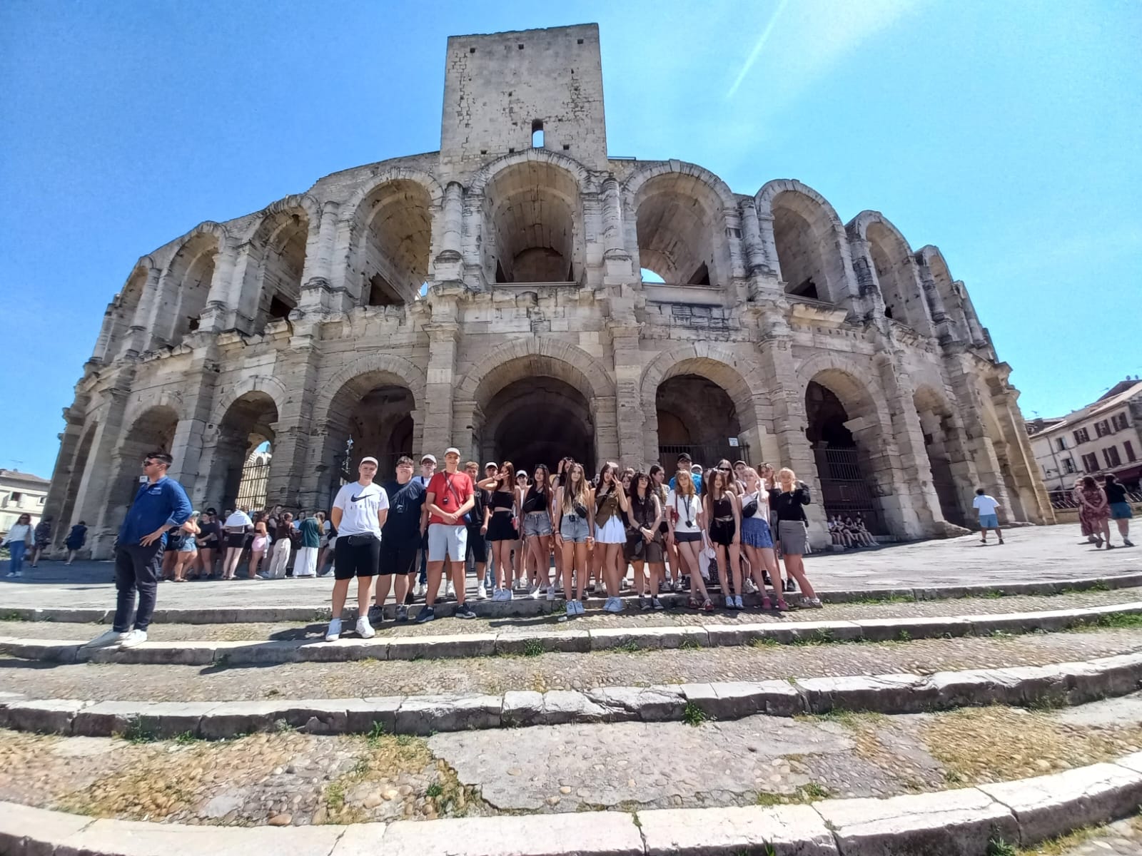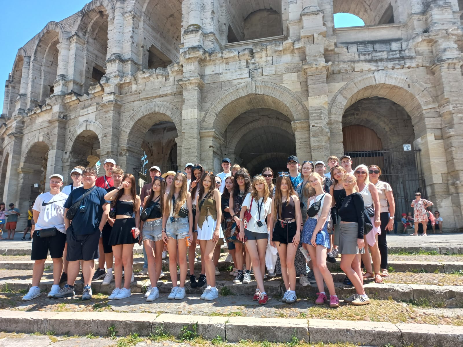 Szóstego dnia, o świcie, spakowaliśmy bagaże i ruszyliśmy w stronę Francji. Po południu dotarliśmy do Arles – urokliwego miasteczka w Prowansji, zwanego „małym Rzymem” i „duszą Prowansji”. To właśnie tu Vincent van Gogh stworzył wiele ze swoich arcydzieł. Zwiedziliśmy termy Konstantyna, Plac Republiki z katedrą św. Trofima, amfiteatr oraz antyczny teatr. Wracając na nocleg, zatrzymaliśmy się w Sainte-Maxime, niedaleko Saint-Tropez, gdzie mogliśmy odpocząć na plaży, podziwiając piękno Lazurowego Wybrzeża.