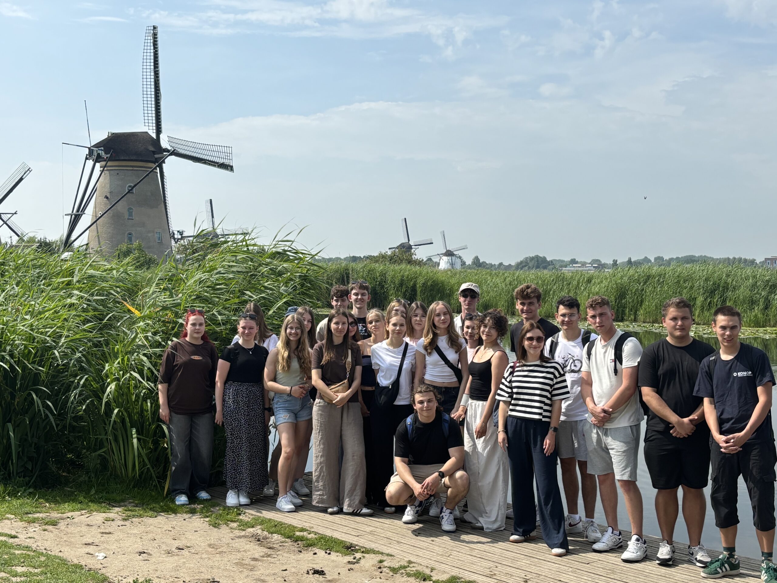 Koniec roku szkolnego wyjątkowo miło kojarzyć się będzie grupie uczniów, która wraz z opiekunkami wyruszyła na Wyjątkowo Fantastyczną Wycieczkę do Krajów Beneluksu. Wielkie ukłony i podziękowania dla Pani Doroty Matuszczak za perfekcyjną organizację i pomysł wyjazdu w dość nietypowym kierunku. Podróż zaczęła się od zwiedzania Berlina. Trochę nudno…? Nic z tych rzeczy. Fragmenty Muru Berlińskiego i twarze ludzi zastrzelonych przy próbach jego przekroczenia na długo pozostaną w pamięci. Podobnie jak pomnik poświęcony tragedii Holokaustu i plac, gdzie płonęły książki uznane przez Hitlera za zakazane. Kolejnym przystankiem był Luksemburg. Prawdziwe cudo. Trudno znaleźć drugie tak pięknie położone miasto z tak bogatą historią. Bruksela – nowoczesna siedziba wielu instytucji europejskich, gdzie nauka i historia idą ramię w ramię. Atomium, Muzeum Historii Naturalnej ( dinozaury!!!) i na deser absolutnie zjawiskowy Grand Place – najpiękniejszy barokowy plac na świecie. Na drugi deser belgijskie frytki i gofry, i czekolada. Diamentowa Antwerpia i Gandawa z klimatycznymi kanałami przywitały nas upałem i pięknymi widokami. Kolejny dzień to holenderskie wiatraki, bliskie spotkania trzeciego stopnia z serem gouda w miasteczku Gouda i chwila wytchnienia na plażach Hagi (dłuższa chwila). Wielki finał to kolacja na molo z widokiem na Morze Północne. Ostatnim akordem wyjazdu była wizyta w Amsterdamie. Spacer po mieście z najmilszą przewodniczką na świecie, rejs po amsterdamskich kanałach, wizyta na Targu Kwiatowym (cuuuuudo) i zwiedzanie Rijskmuseum (też cudo). Amsterdam żegnał nas tradycyjną lokalną kolacją w klimatycznej restauracji. A potem już- witaj ojczyzno!