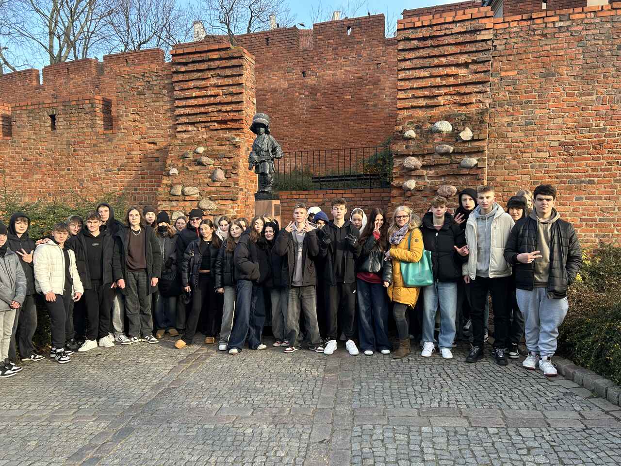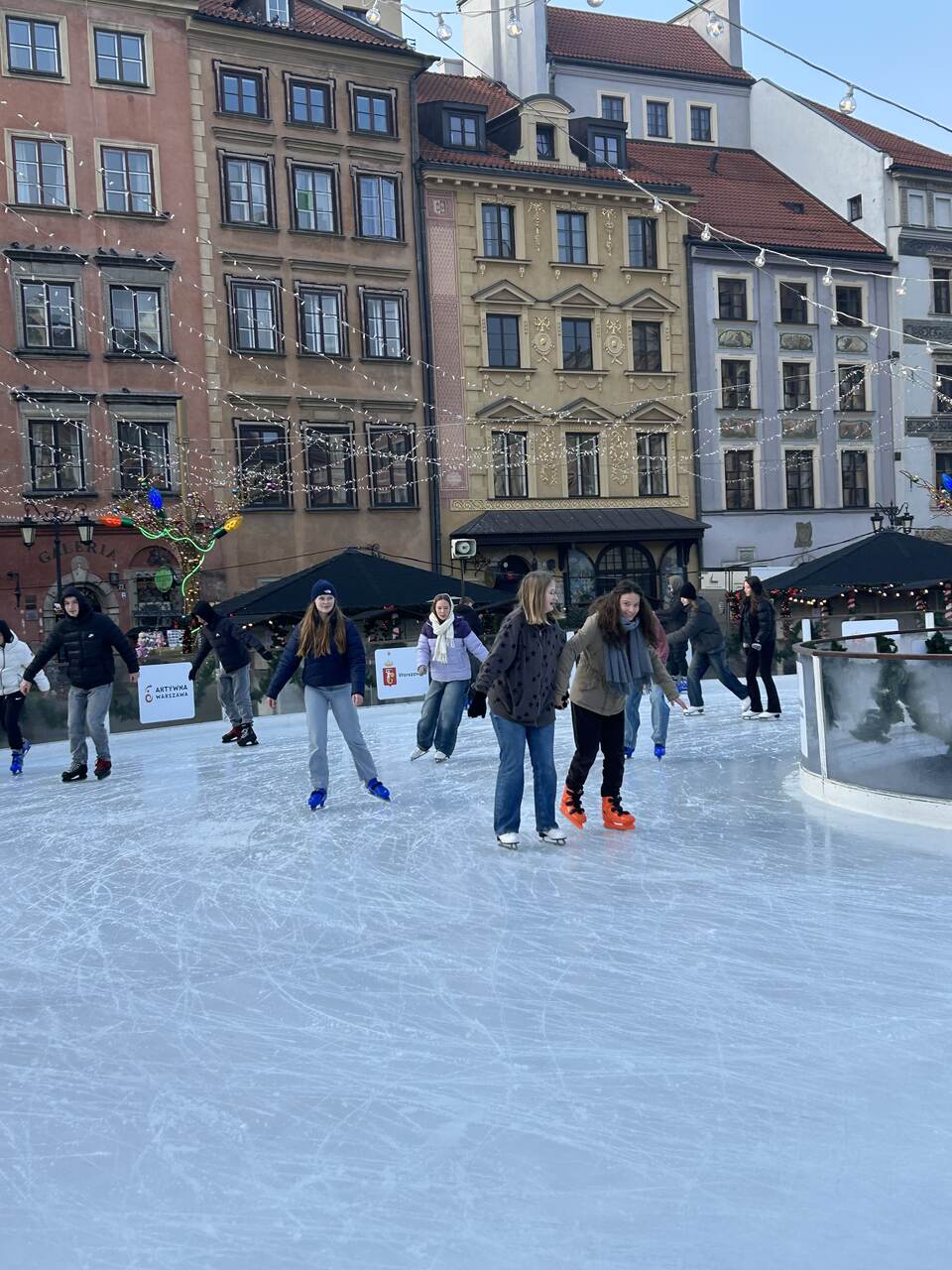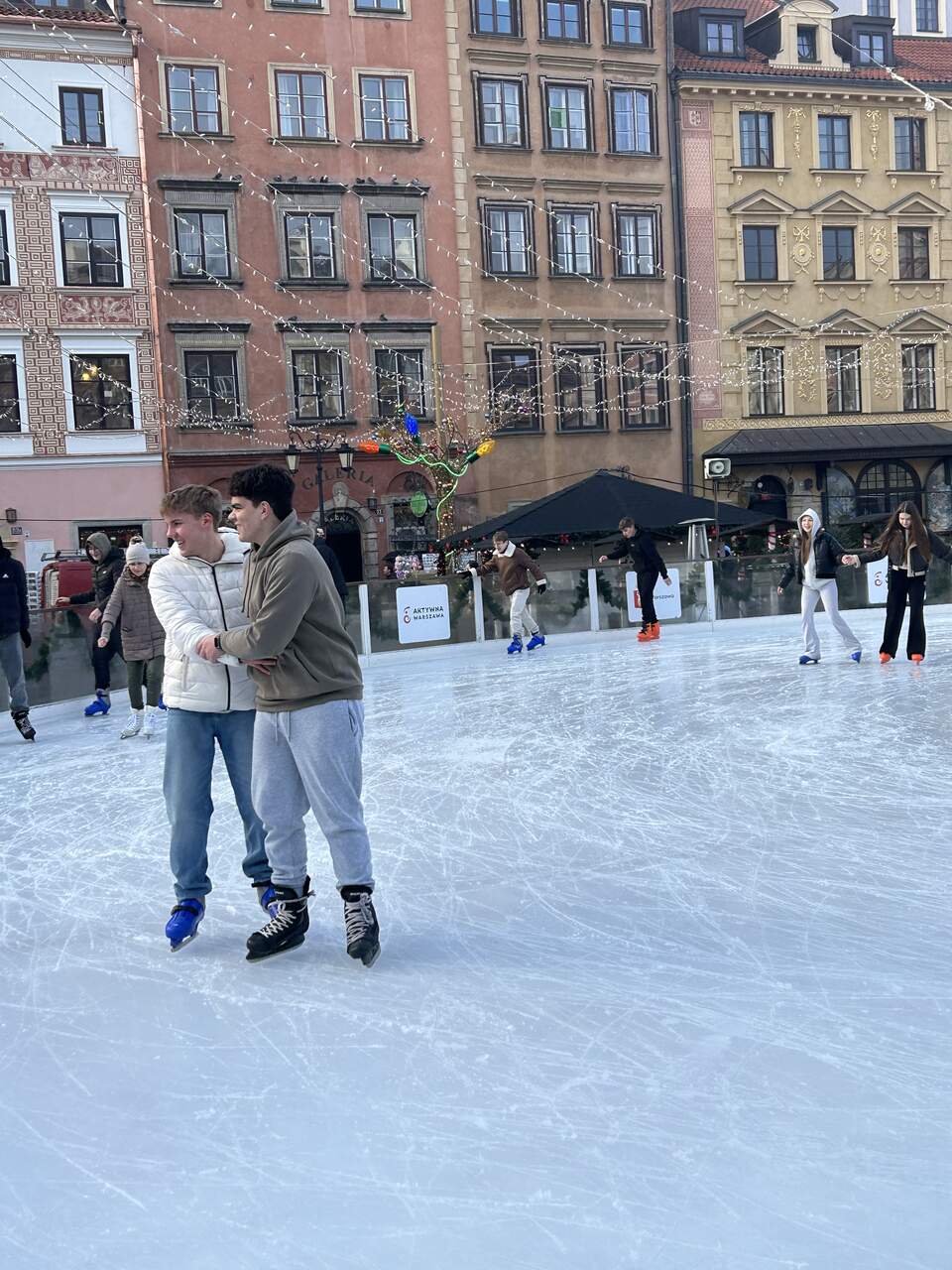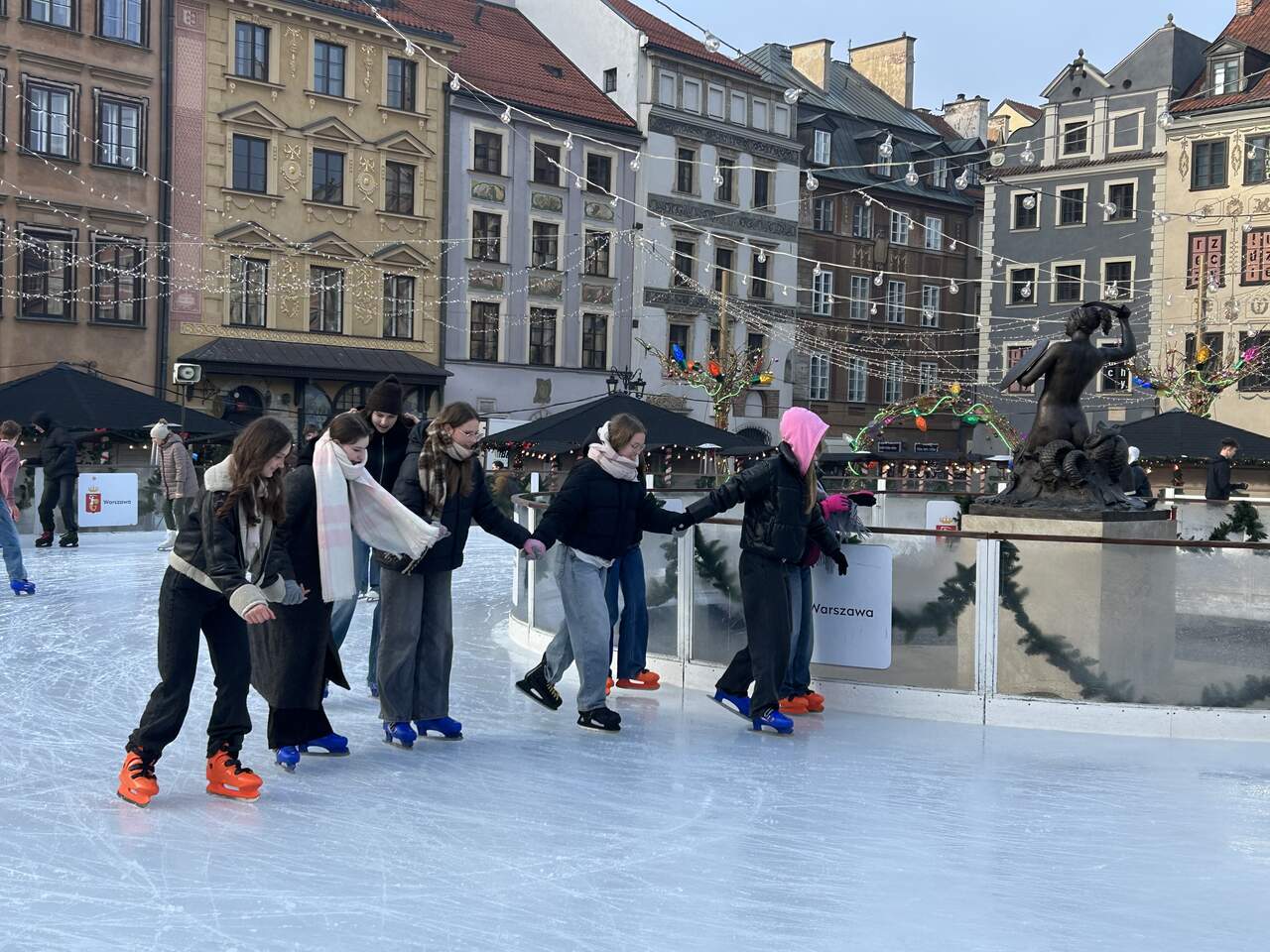 5 grudnia uczniowie klas II B2 i II C pod opieką p. Marzeny Łukasiewicz, p. Anny Napieraj i p. Tomasza Karonia wzięli udział w mikołajkowej wycieczce do Warszawy. Na lodowisku na Starym Mieście uczniowie świetnie się bawili – niektórzy po raz pierwszy stawiali kroki na lodzie, inni wykazali się umiejętnościami, co ważne – wszyscy wspierali się nawzajem. Po lodowisku spacerowaliśmy po Starym Mieście, Placu Zamkowym. Następnie zobaczyliśmy Barbakan i kupiliśmy pierniczki na kiermaszu świątecznym. Nasz spacer zakończyliśmy przy Pomniku Małego Powstańca. Następnym punktem naszej wycieczki było kino, gdzie obejrzeliśmy wzruszający i zabawny film „Listy do M. Pożegnania i powroty”. Wycieczka, zakończona późnym popołudniem, dostarczyła uczestnikom niezapomnianych wrażeń i wprowadziła w świąteczny nastrój.